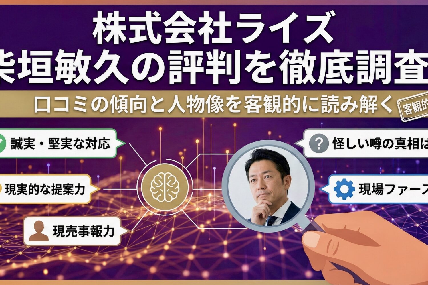 株式会社ライズの柴垣敏久の評判は?口コミの傾向と人物像を客観的に読み解きます。